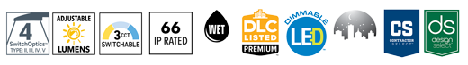 SwitchOptics™ delivers four distribution patterns from a single EAX luminaire – no lens changes, no custom orders. Just flip the switch to shift seamlessly from wide-area parking coverage to pathway illumination or a perimeter site solution.